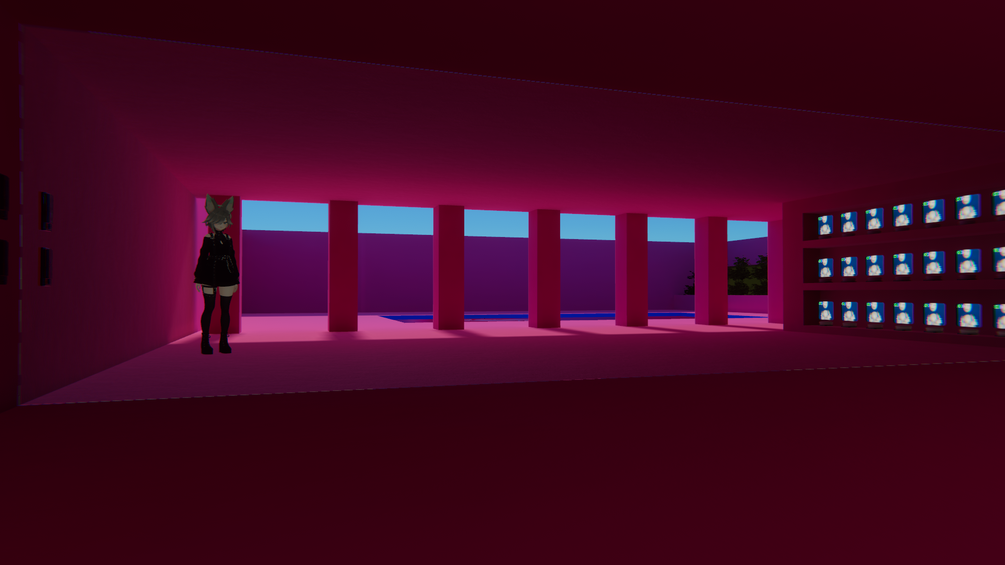 I haven't ever seen this in VRC before so I decided to do what I seem to do with every liminal space and you guessed it...Made it into an avatar room. This world features Haptic buttons, Wolfie's video player, a couple mirrors, and 55 avatar podiums.